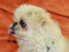 This little one was put on craigslist after his owner died. No one in the family wanted him. I just hate that-- my girls know if something happens to us, they get our dogs. No dogs, no inheritance haha. Really, they are both dog people and would take care of my pets. They know how much I love my Pekes!