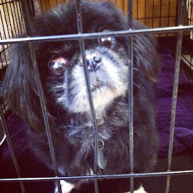 Look closely-- Raymond does not have a tail. We don't know if he was born that way or it was docked at some point. (Not normal in Pekingese.) Welcome to rescue, Raymond-- we'll take care of you!