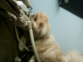 Roxy really wanted to see more into the stroller!