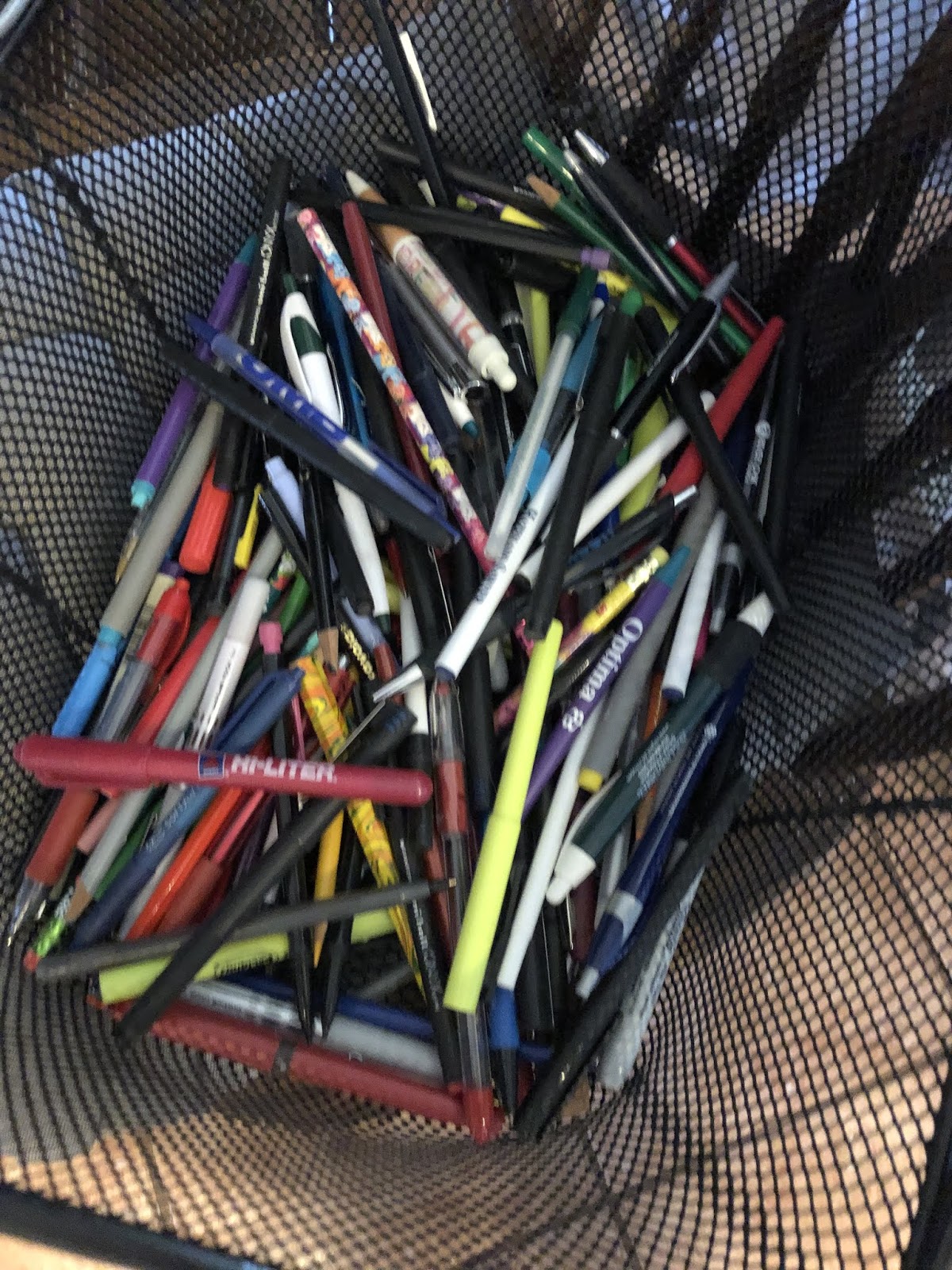 What else can you do while you are confined. I sat (as I was teaching Beach Bit, home schooling) and pulled out all the assorted pens and pencils in my desk and on the counter (how can they be in so many places!). This is a bit much. So, in boredom, I checked out each one and threw out a lot. Now I have order in my pencils and pens-- quite an achievement LOL. I might clean my closet next. Or not. I might just sit (fat chance of that happening).