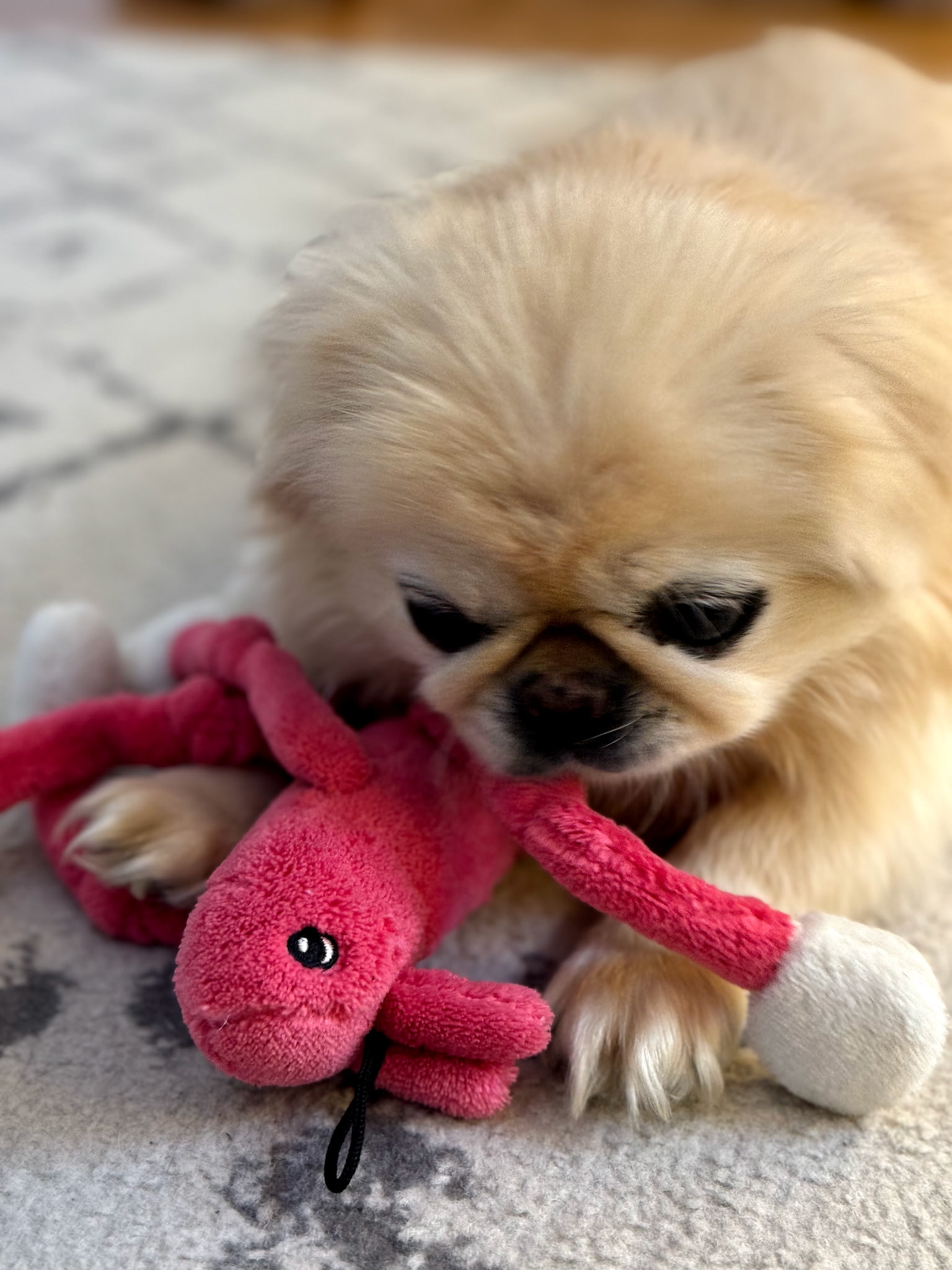 Domino was her friend. Domino came into rescue needing some special help. He was fearful and his parents did so much to help him feel safe. I remember their story of trying to find him one day. He didn't seem to be there! They finally found him- in the laundry hamper covered by the clothes on top of him. They could never figure out how he got in there. Beau and Pop were in a shelter in my area. They were found walking down a street and their owner was never found. They were bonded and were adopted together by my friends. They have done so much to help Pekes in our rescue.